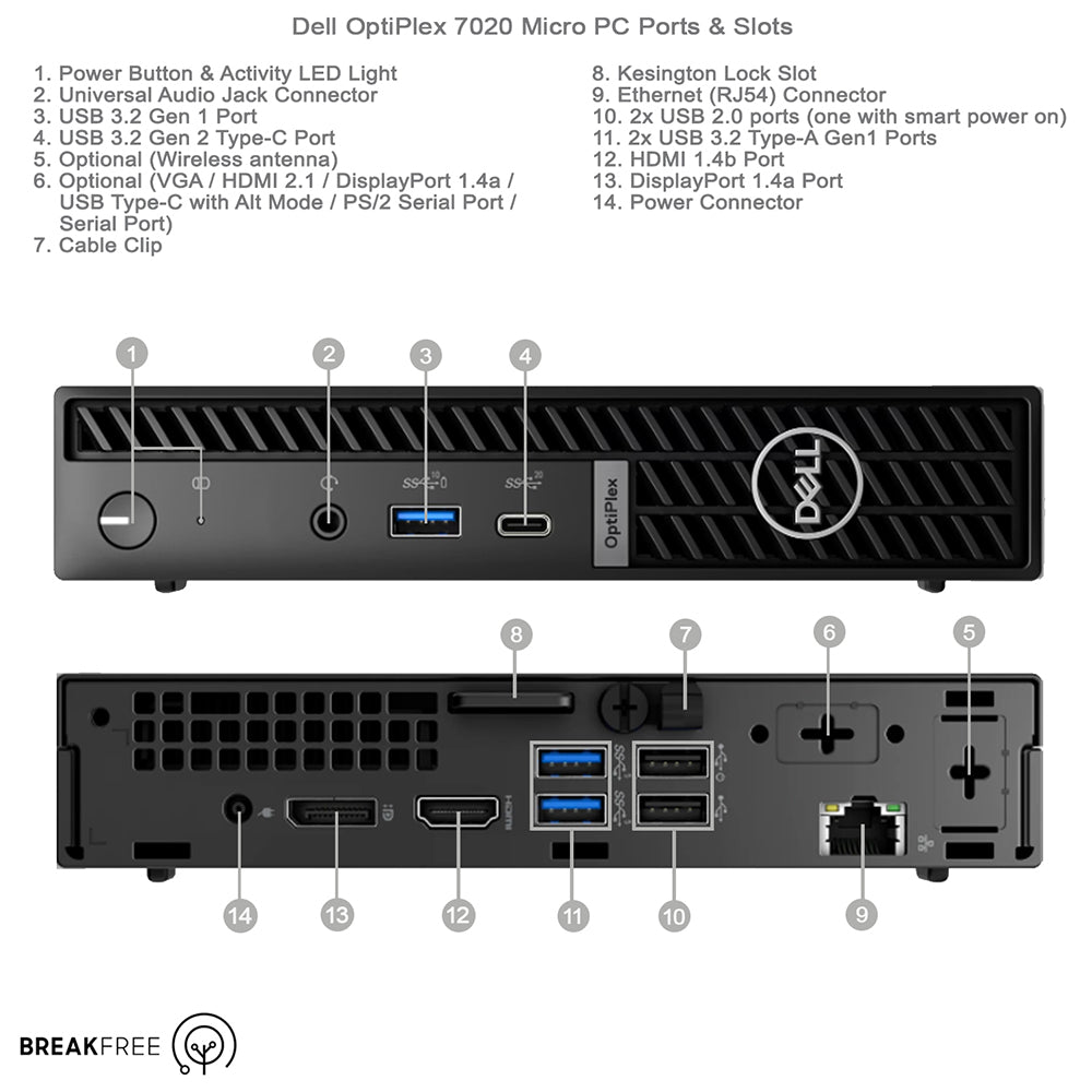 Dell OptiPlex 7020 Micro PC i5 14500T 4.8GHz 16GB RAM 500GB SSD WiFi Bluetooth