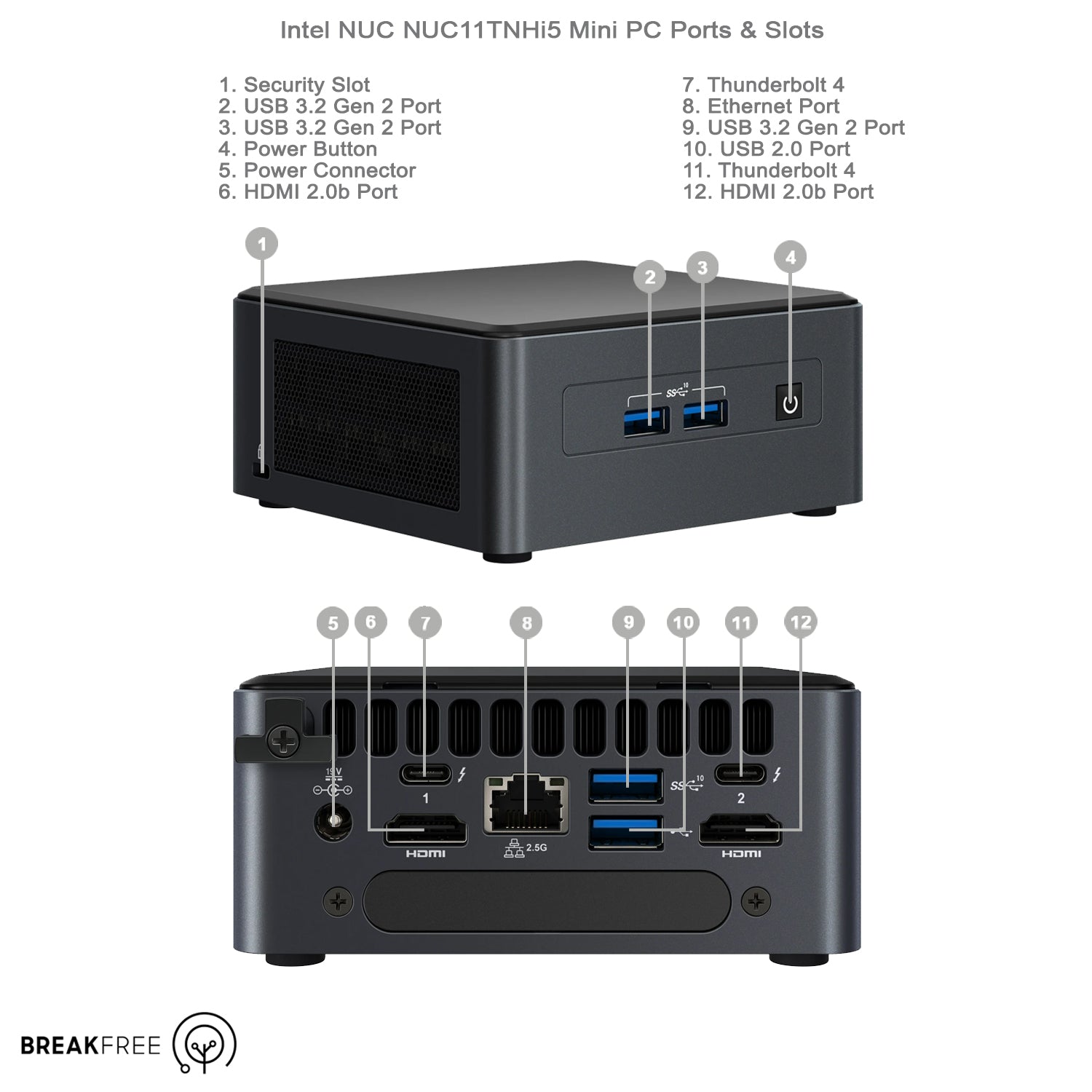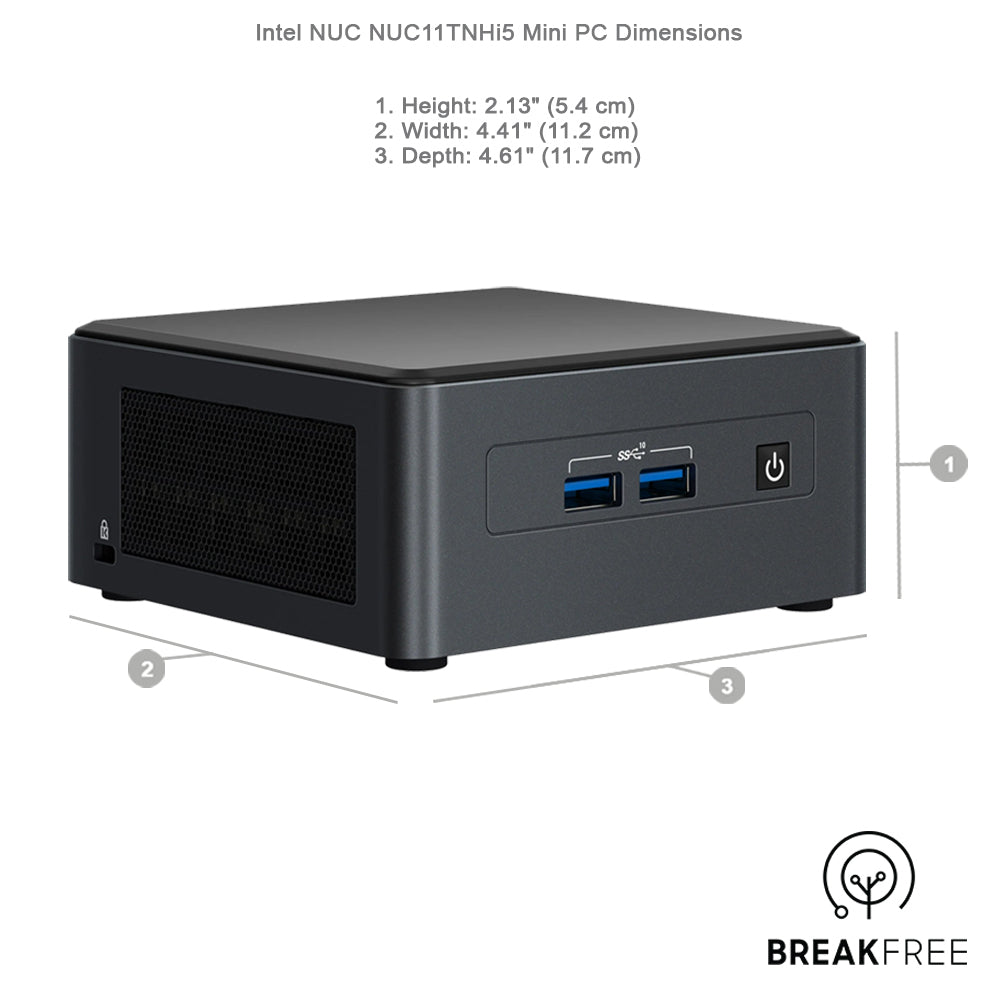 - Model : Intel NUC Kit NUC11TNHi5 Barebone Mini PC