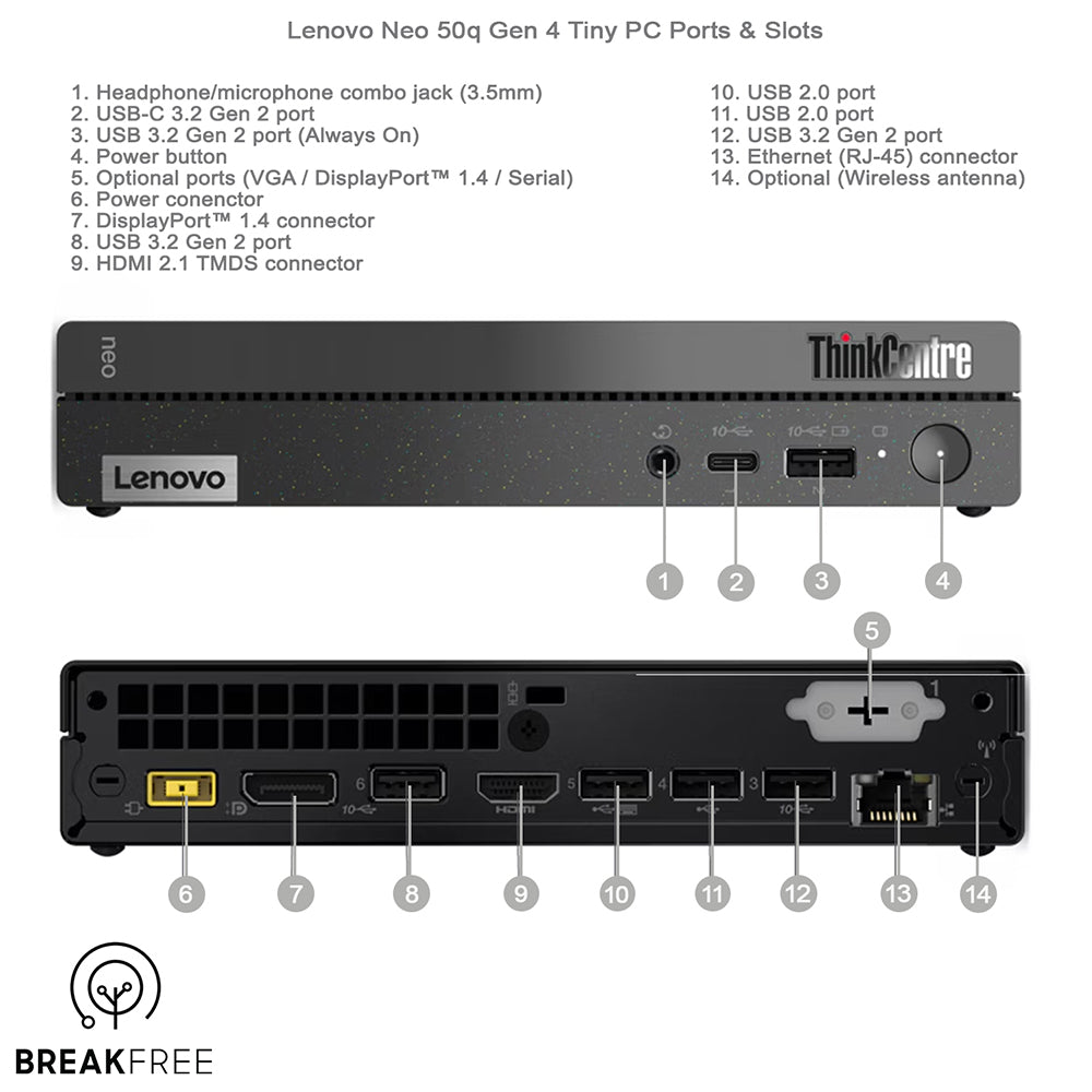 Lenovo Neo 50q Gen4 Tiny PC i5 13420H 4.6GHz 16GB RAM 500GB SSD WiFi Bluetooth