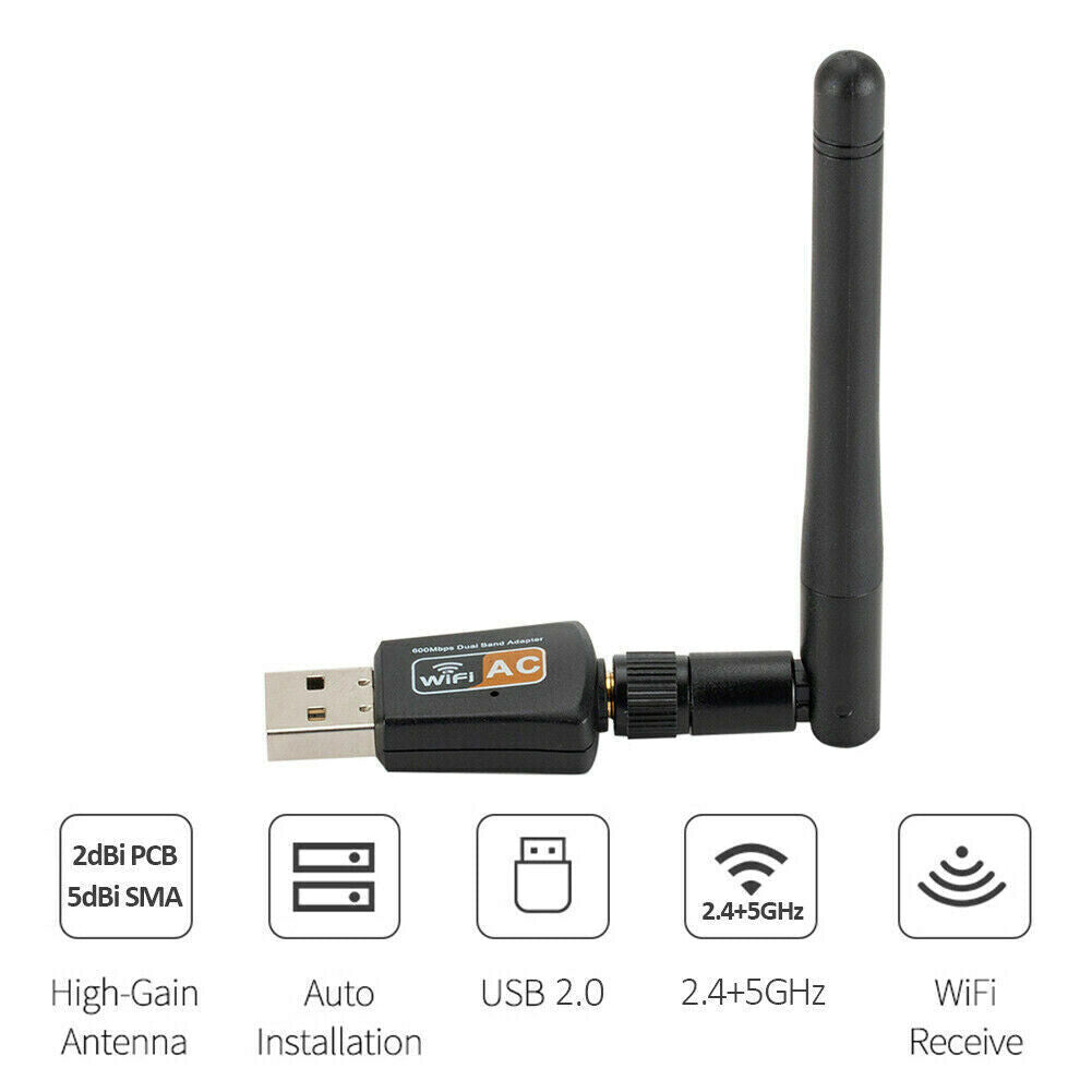 USB WiFi Adapter Wireless 600Mbps Dual band 802.11ac 2.4GHz-5GHz Antenna Laptop